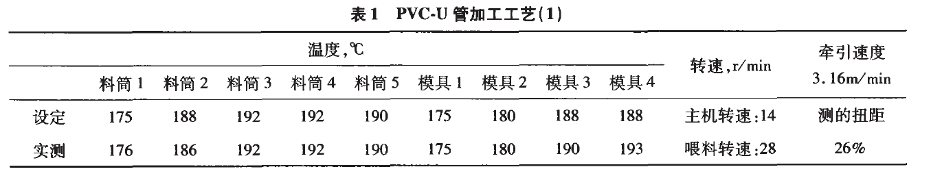 擠管生產(chǎn)中,管材的各項(xiàng)機(jī)械物理性能均與擠管過(guò)程的工藝控制有關(guān)。合理的工藝設(shè)置方能使PVC混合料形成具有一定塑化度并且塑化均勻的熔體,因而管材的縱向回縮率也與工藝控制有關(guān)。筆者從以下兩方面論述。