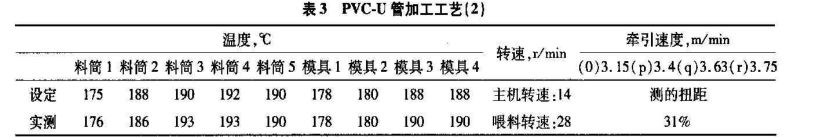 擠出機(jī):SJSZ-65,雙螺桿異向擠管機(jī)組,無(wú)錫產(chǎn);φ160管材模具,壓縮比19:1,自制;實(shí)驗(yàn)烘箱,101-3型,長(zhǎng)春智能試驗(yàn)機(jī)研究所制。