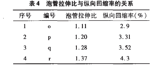 表4 泡管拉伸比與縱向回縮率的關(guān)系