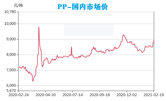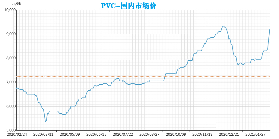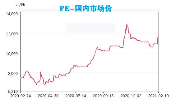 2021年春節(jié)一過(guò),塑料原材料行情受開(kāi)工率企高影響,全面逆勢(shì)上漲,除了個(gè)別維持高位震蕩以外,PVC等原材料的價(jià)格都出現(xiàn)了直線上升的態(tài)勢(shì),預(yù)計(jì)此行情還將至少持續(xù)兩個(gè)月。